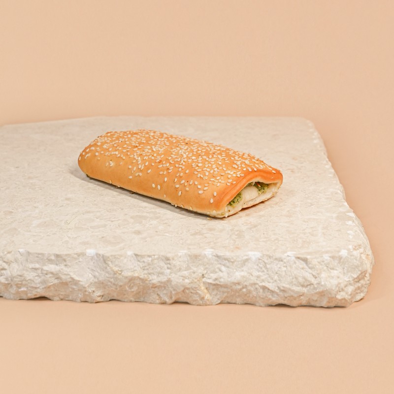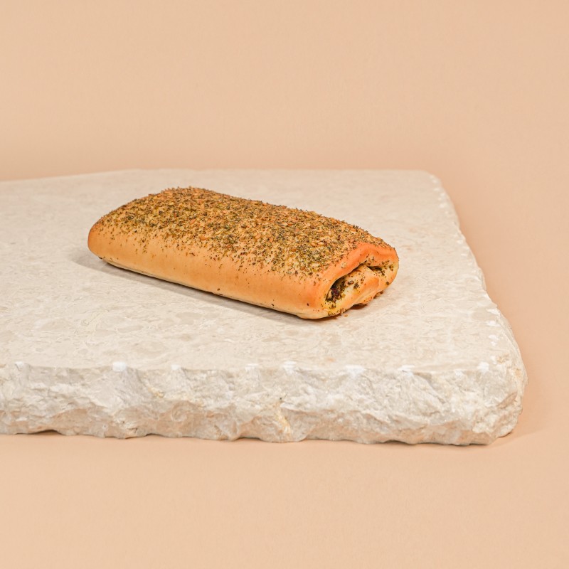 (405 سعرة حرارية) 102 دقيقةمعجنات هشة محشوة بجبنة الهالومي الكريمية وصلصة البيستو الزاهية، لتمنحك لقمة مالحة، جبنية، وعشبية مليئة بالنكهات.